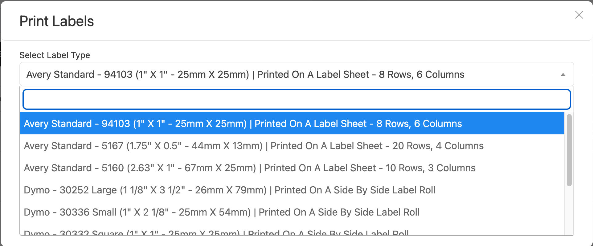 Our new barcode printing feature simplifies inventory management and product tracking. An ongoing list and additions of labels available. You can also reach out to support to request for more options as you need.