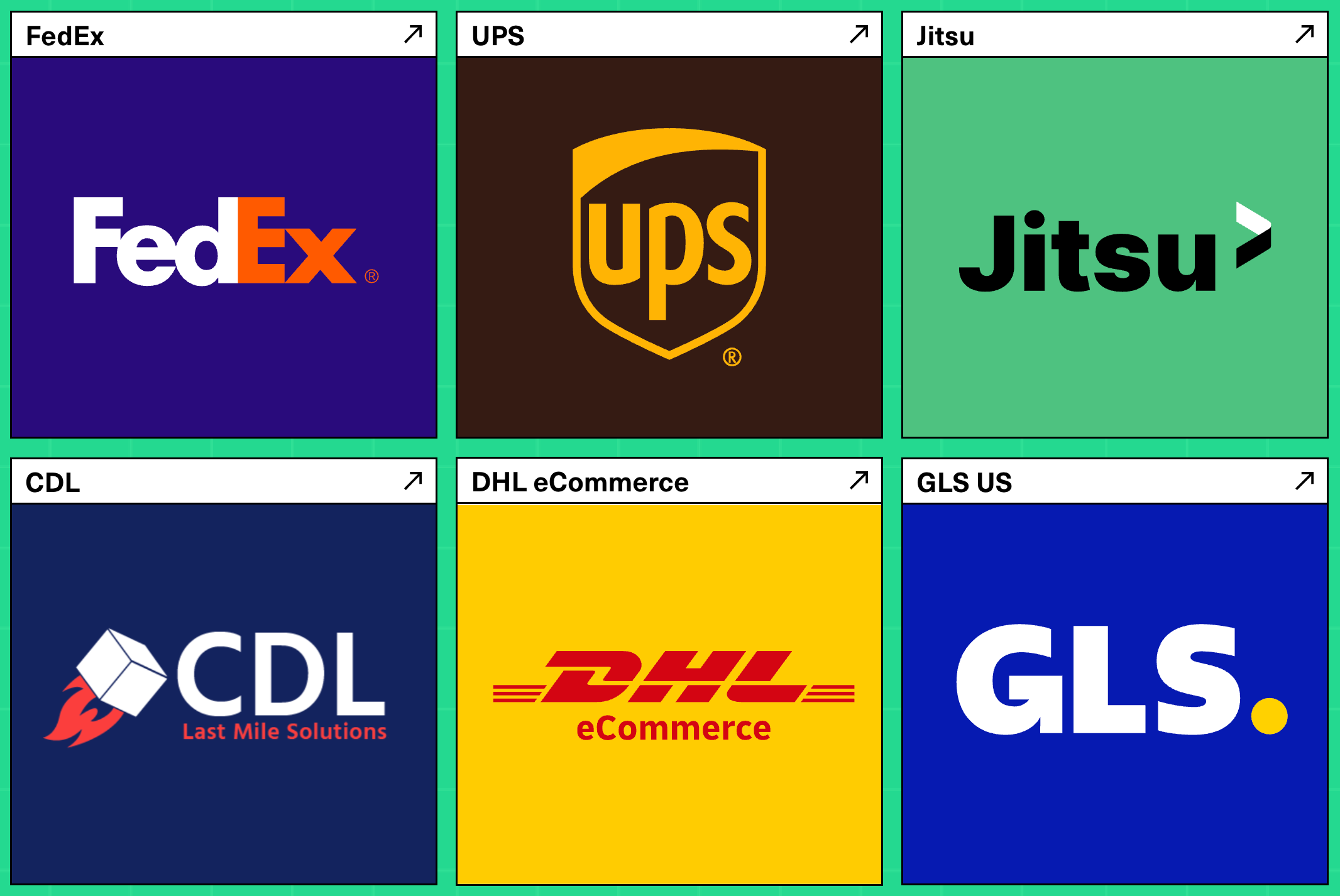 Support for over 100+ carriers worldwide, including major players like DHL, FedEx, UPS, USPS, Canada Post, Australia Post, plus a wide range of regional and international providers