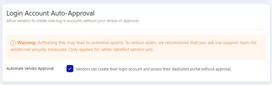 Vendors can apply via a sign-up form that makes the opt-in for auto-approval clear and user-friendly.