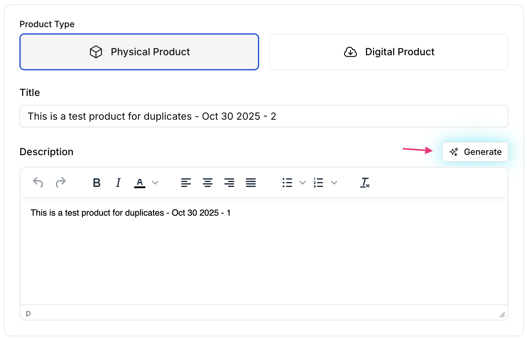 🧠 Just click “Generate with AI” and let our AI do the creative heavy lifting.